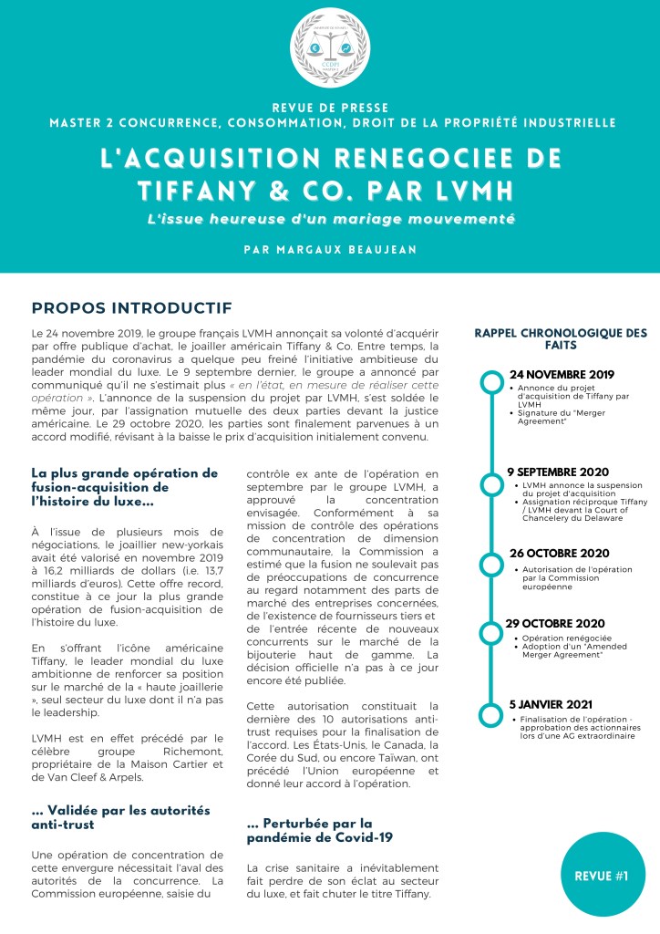 L’acquisition renégociée de Tiffany & Co par LVMH 25Nov 202010 Nov 2021 L’acquisition renégociée de Tiffany & Co par LVMHTélécharger Articles similaires