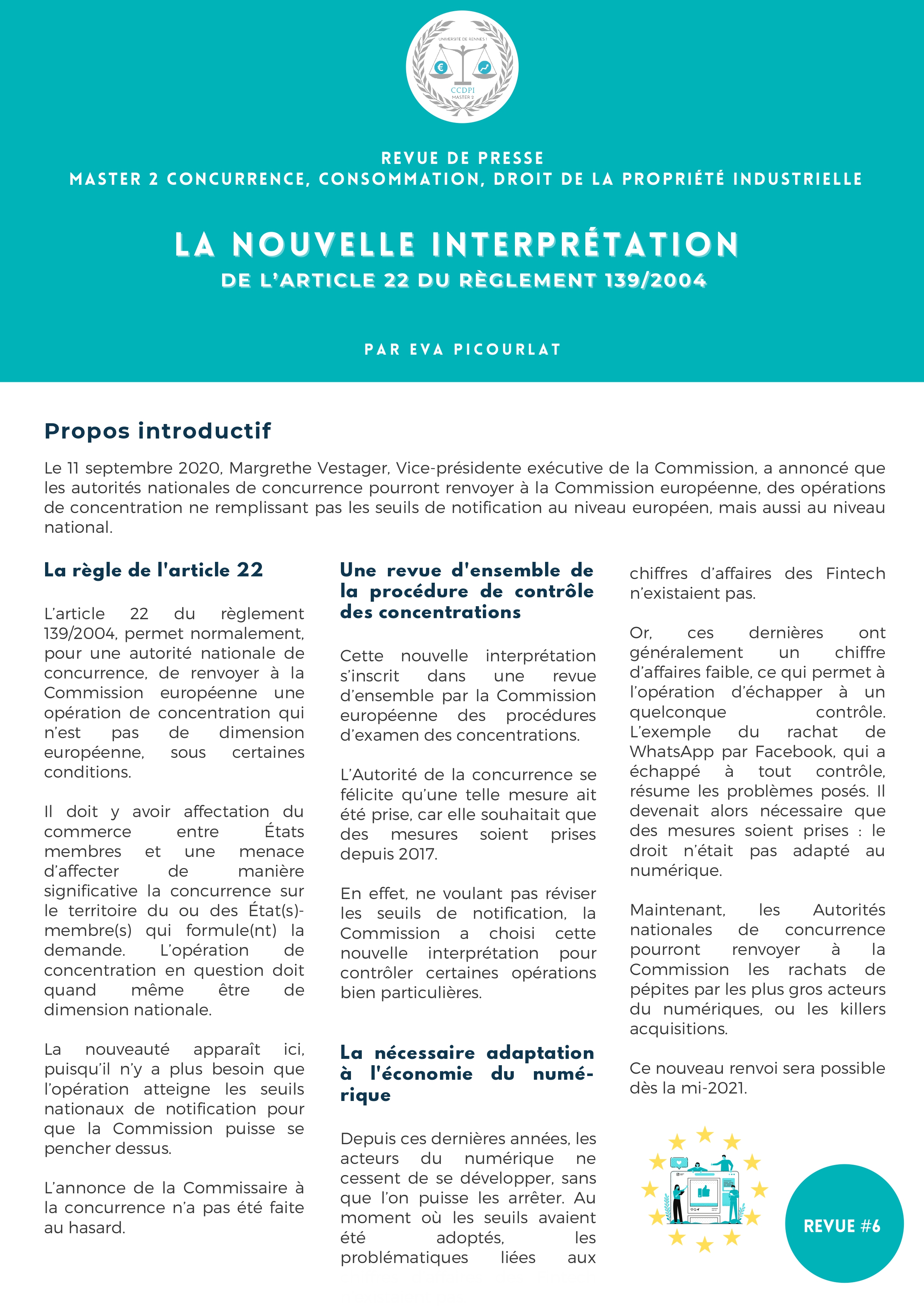 La nouvelle interprétation de l’article 22 du règlement 139/2004 13Jan 202111 Nov 2021 La nouvelle interprétation de l’article 22 du règlement 139/2004Télécharger Articles similaires